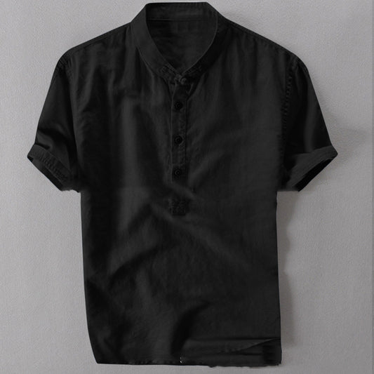 Chemise décontractée à manches courtes en coton et lin pour homme, style vintage